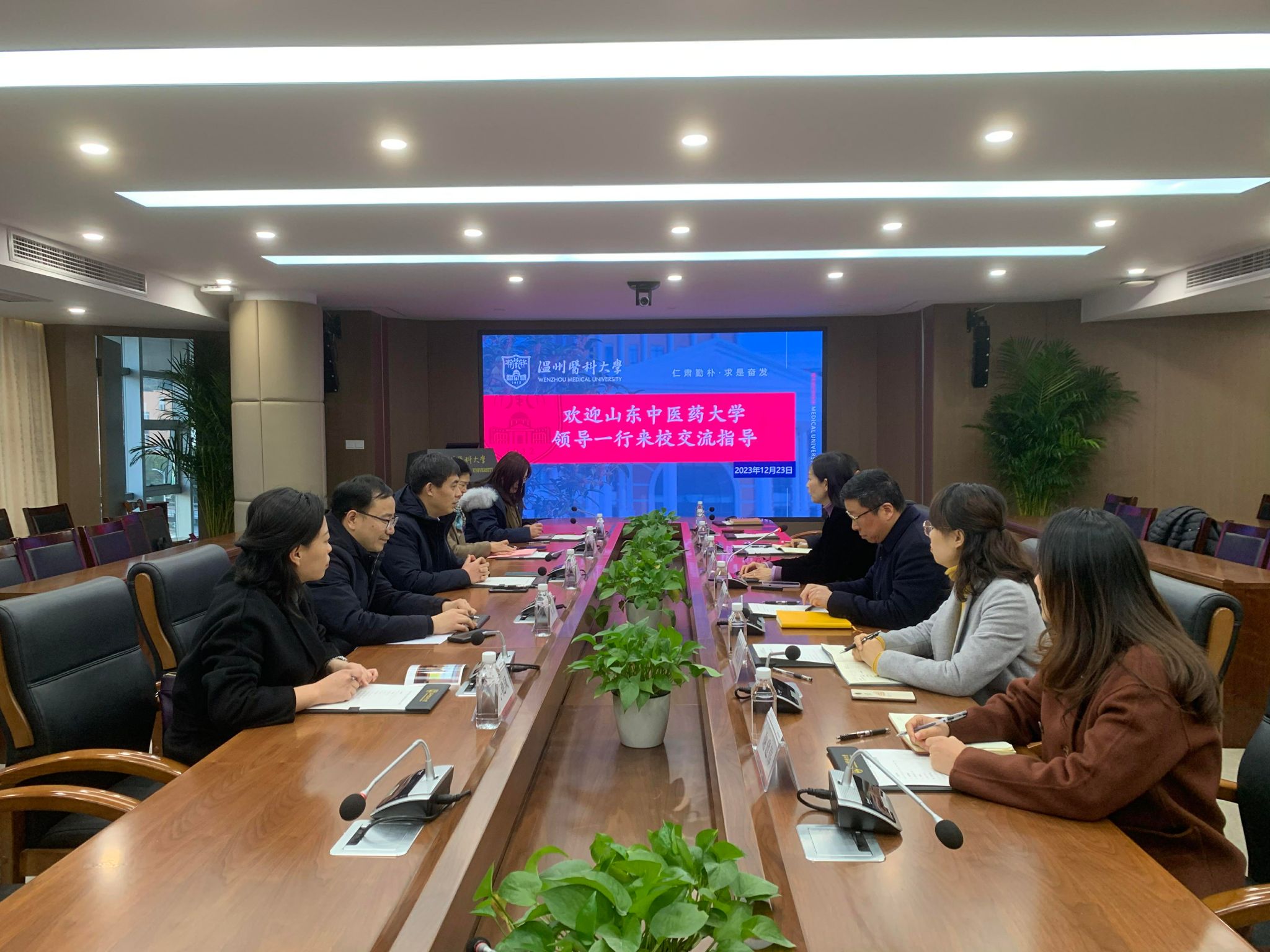 12月23日下午,山东中医药大学副校长张玉龙、招生就业处处长石作荣、教务处副处长尹永田、健康产业技术研究院副院长王杰琼、招生就业处副处长兼大学生创业指导中心主任李艳凤,前来85porn交流指导。在同心楼四楼会议室举行交流会议,会议由85porn 副校长朱雪波主持,85porn教务处、学生处、团委、85porn 等部门参加会议。