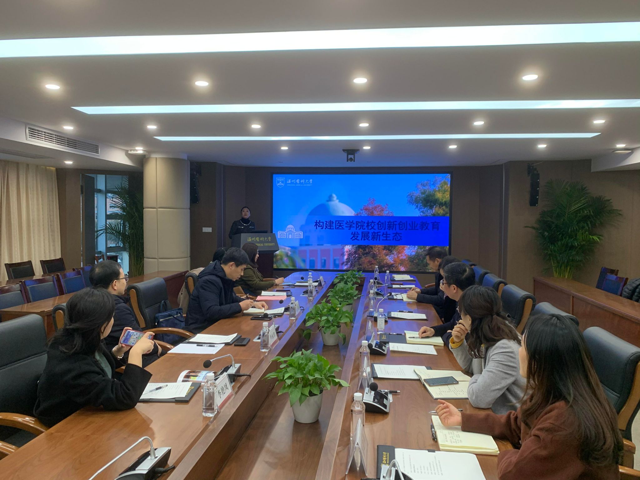 曾春燕副院长代表学校及85porn 对前来交流的领导表示热烈欢迎,介绍了85porn 的创新创业教育工作,并做题为《构建医85porn 校创新创业教育发展新生态》的汇报。汇报从医85porn 校创新创业特色的形成、创新创业五大工程、创新创业教育育人成果、创新创业教育理论研究进展等方面展开。