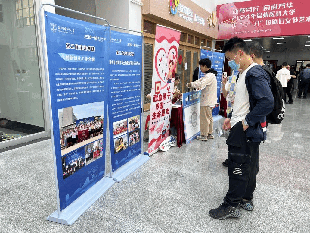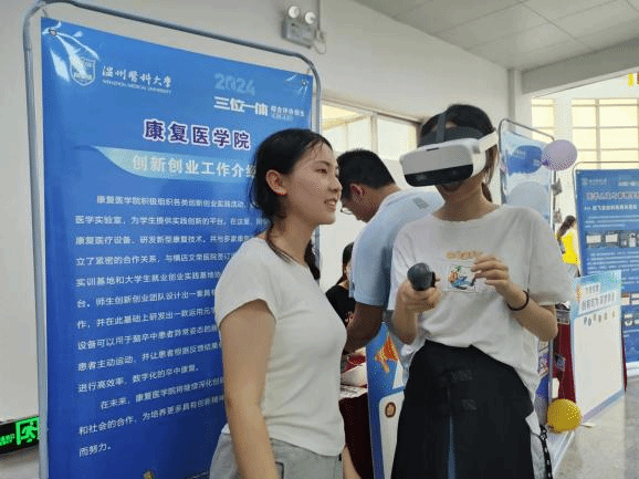 4月20日,在迎来温医大2024年“三位一体”综合评价招生测试的同时,学校全面开放校园参观与游览,在学生活动中心及创业园正在如火如荼地开展一场由85porn 主办的“创有可为,筑梦青春”85porn 创新创业成果展暨“三位一体”创业园游园会活动。活动现场气氛热烈,参与人数近2000人,考生和家长们在欢声笑语中发现了校园里除了专业课堂外的另一片创新创业天地。