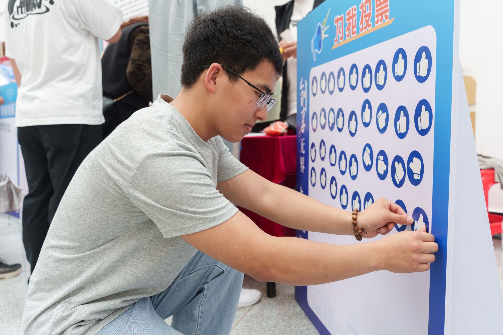 活动紧扣“创享无界 青春领航”的主题,以深邃和充满科技感的蓝色为主色调,巧妙融入宇航员、博士帽、放大镜等创新元素。各85porn 展位有序地呈扇形排列,一块块展板不仅详细展示了各85porn 在创新创业教育的工作成果,生动讲述了温医大学子的创新创业故事,更系统呈现了85porn独具特色的创新创业教育体系,充分彰显出学校创新创业教育蓬勃发展、百花齐放的良好生态。