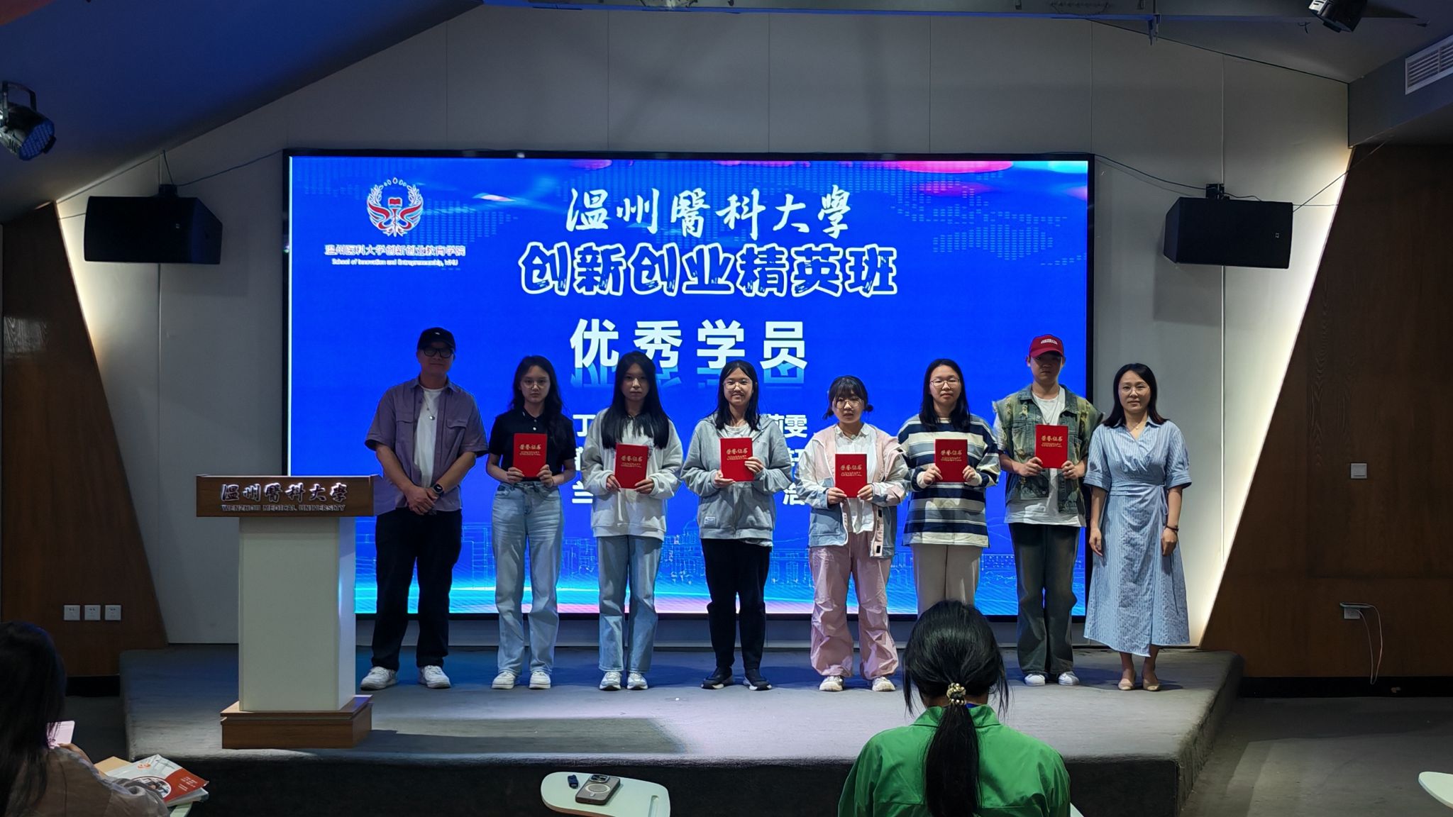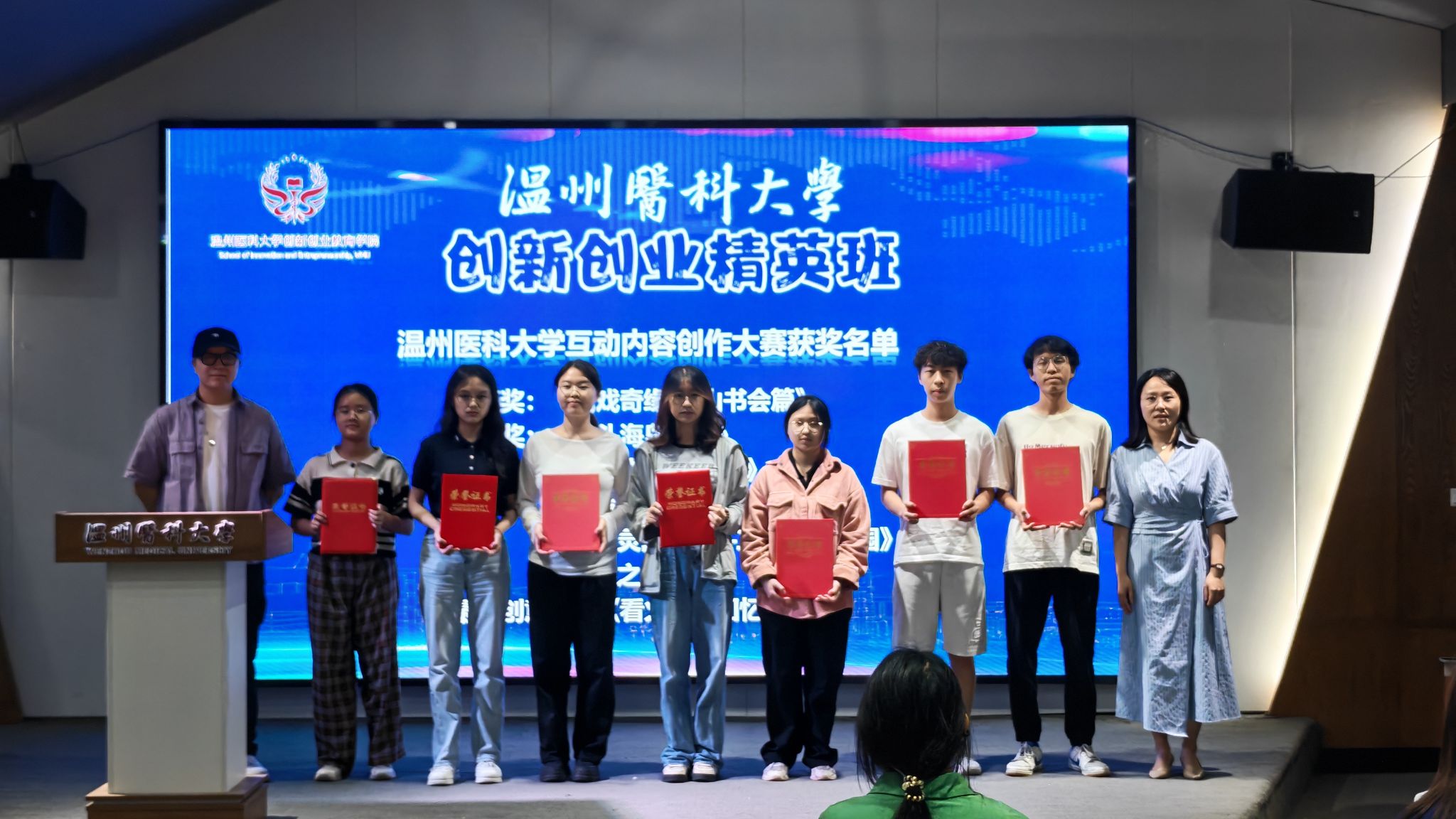 此次创新创业精英班结业典礼暨互动内容创作大赛颁奖仪式在热烈的氛围中圆满落幕,学员们带着满满的收获与期许踏上新的征程,用创意与实践续写属于温医大学子的青春华章。