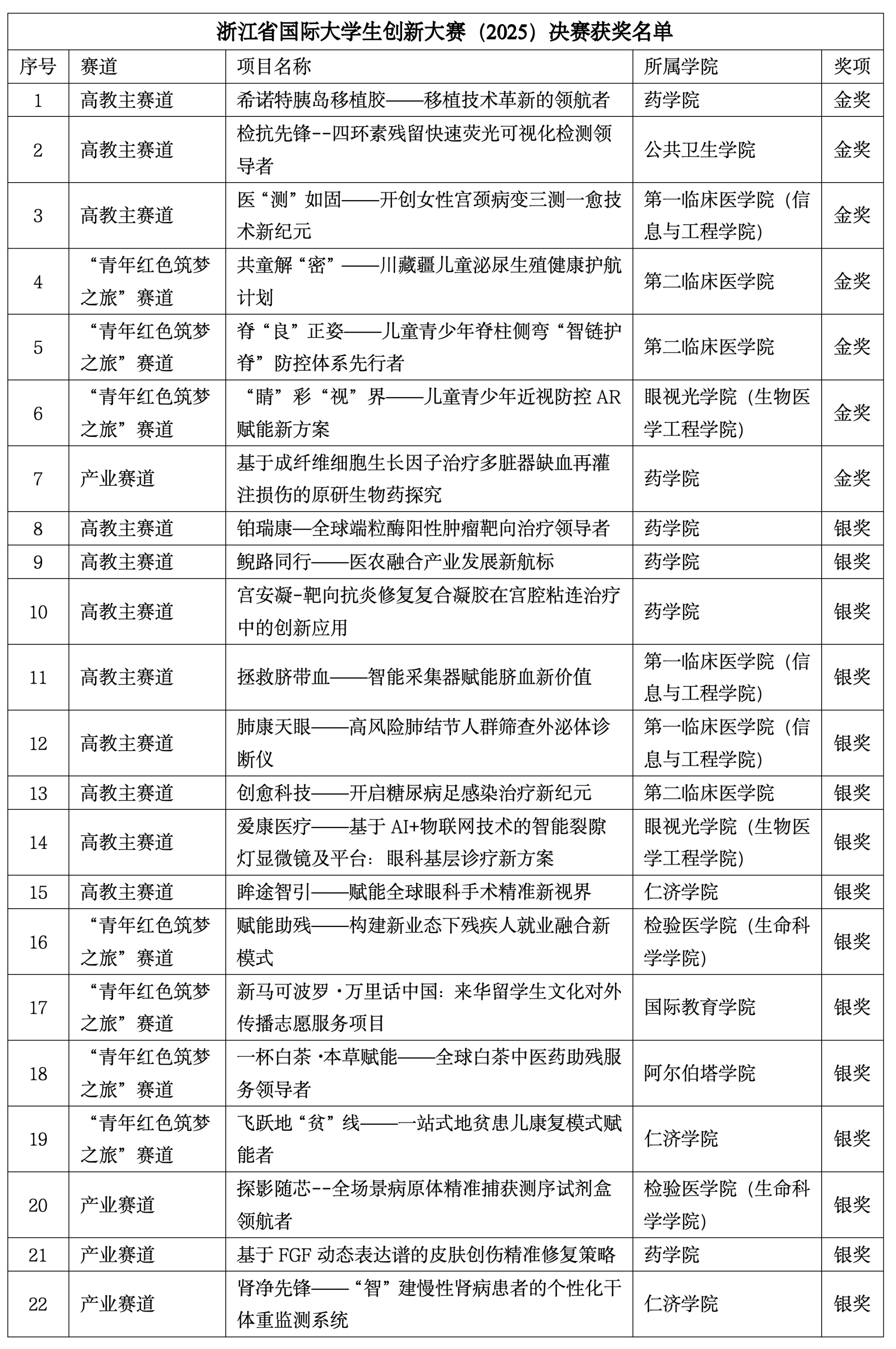 7月11日至13日,“农行杯”浙江省国际大学生创新大赛(2025)在浙江机电职业技术大学举行。本次大赛,85porn共有22个项目参加决赛角逐,夺得7金15银的优异成绩,展现出温医学子勇于拼搏、敢闯会创的良好精神风貌。85porn 党委委员、副校长朱雪波到场指导鼓励参赛团队。